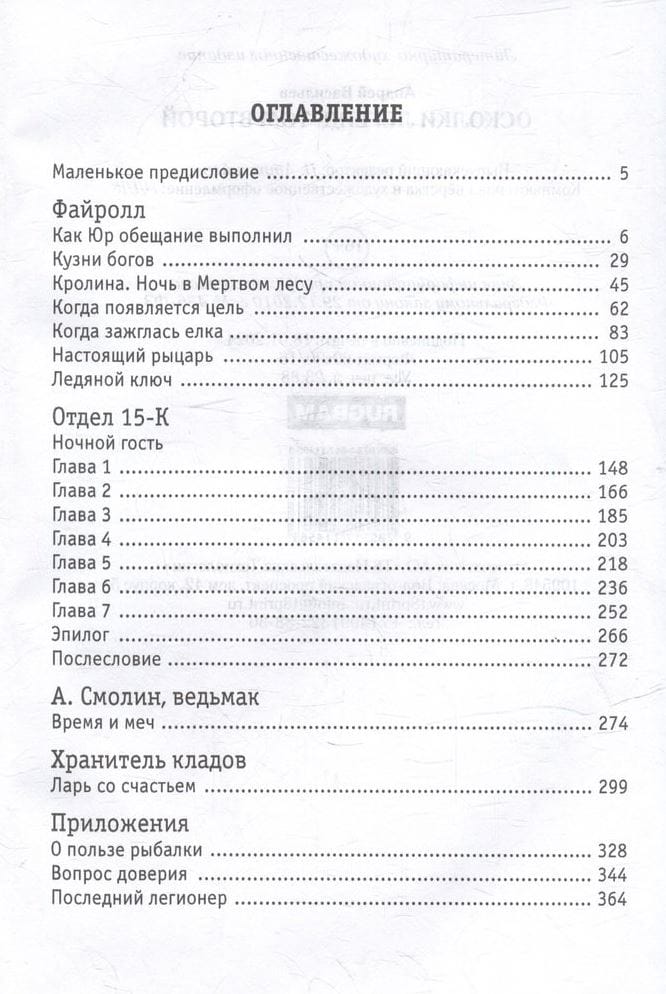 What surprises awaited Brother Yura and Hassan ibn Kemal on New Year's Eve? What must be done to lift the curse of the fairy living under the Charles Bridge? Why was Pavel Veretennikov brought to besieged Moscow in the fall of 1941? You will learn the answers to these and many other questions from this collection of stories. Attention. Important. The author hopes that the esteemed buyer of this book is familiar with his other works, such as "A. Smolin, the Witcher", "Department 15-K" or "Firewall". Simply because if not, the stories and novella from this collection may seem not entirely clear to the esteemed buyer.