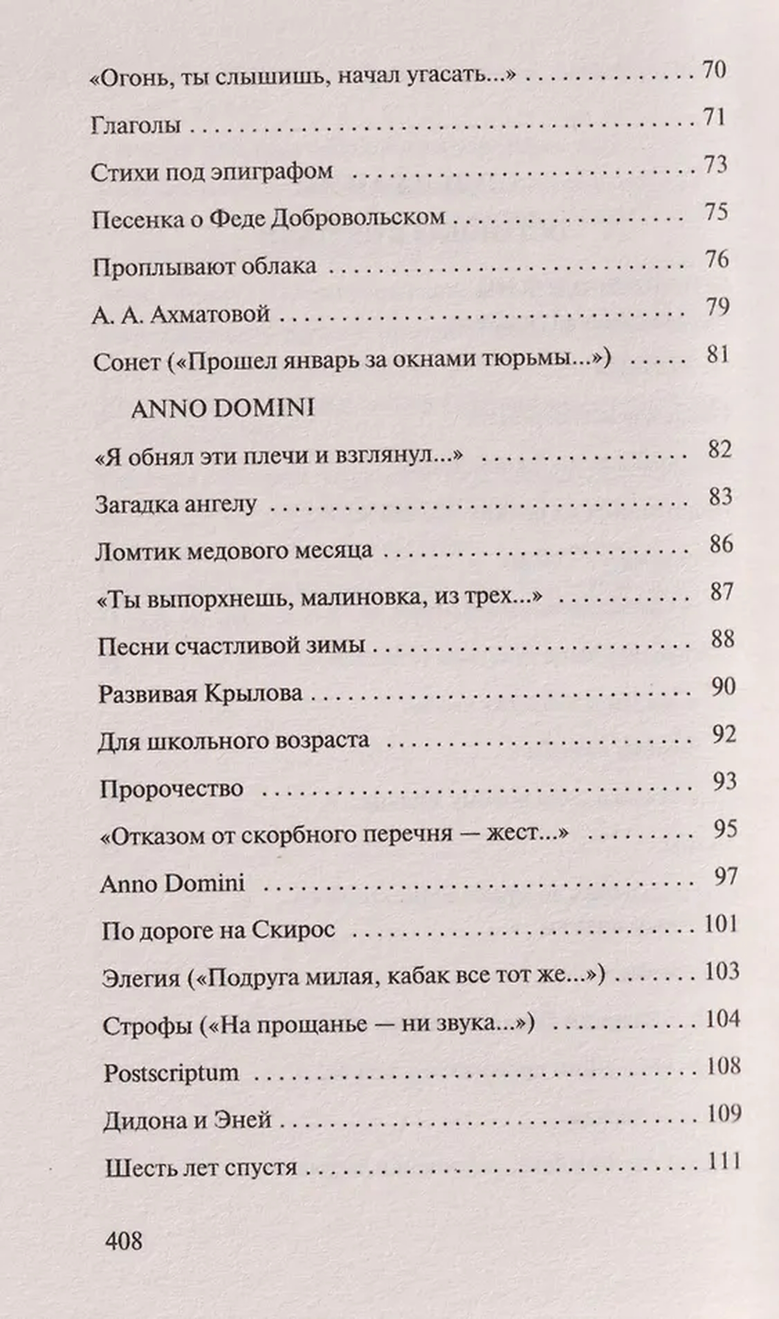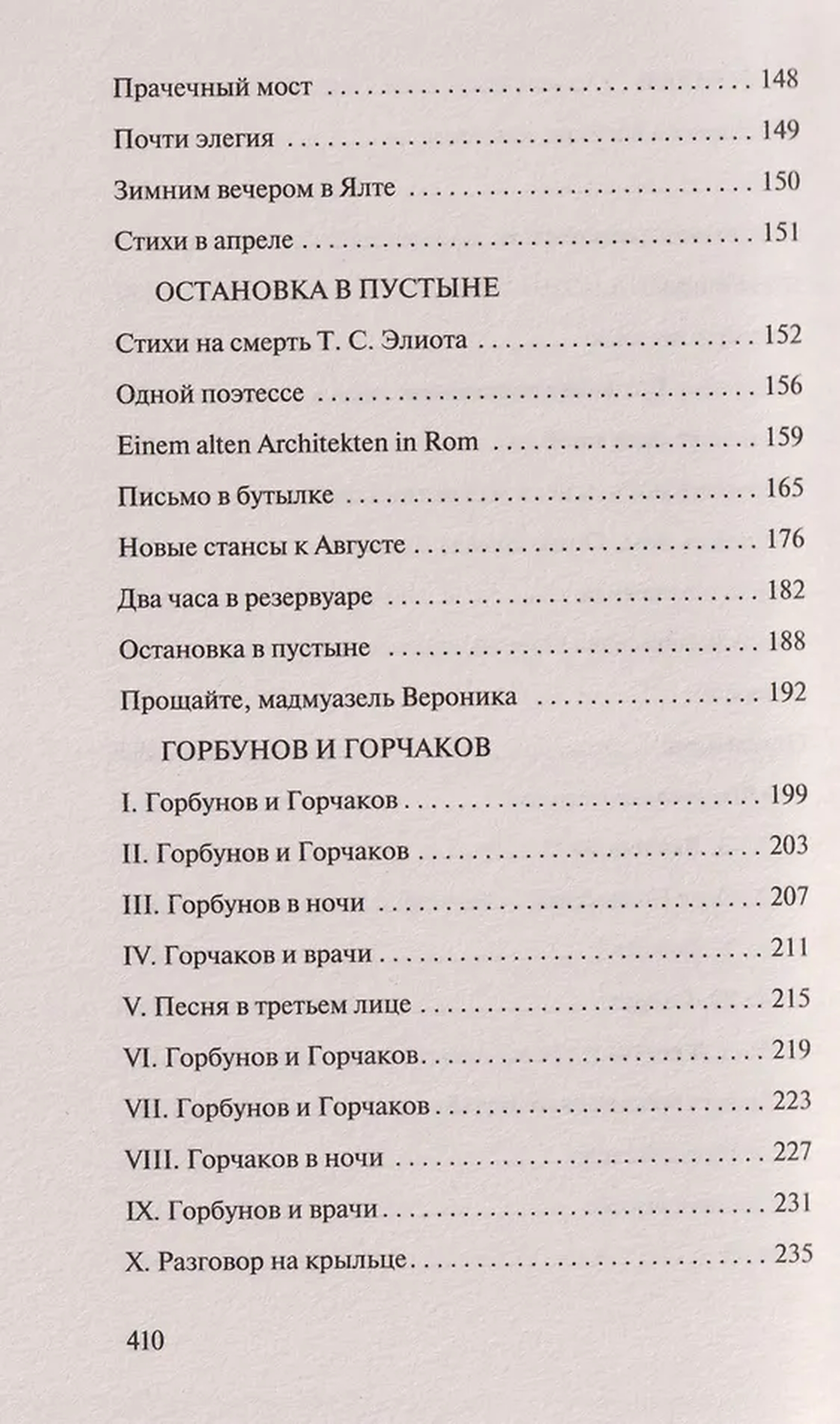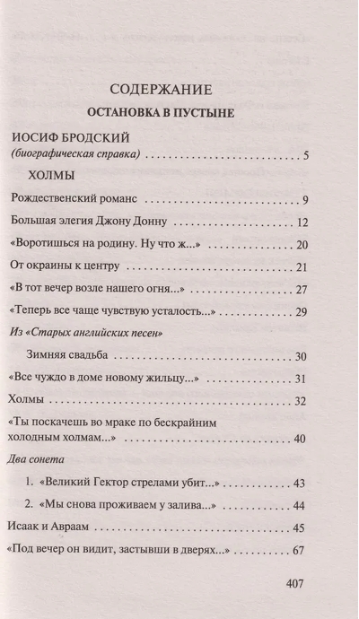 "A Halt in the Desert" and "The End of a Beautiful Era," the first collections of poems compiled with the author's participation, were first published in the United States and appeared in Russia only just before the poet's death. They included poems written before his departure from the USSR, such as "A Christmas Romance," "A Long Elegy to John Donne," "In the Country God Doesn't Live in Corners," "A Speech about Spilled Milk," "A Conversation with a Celestial Being," and others.