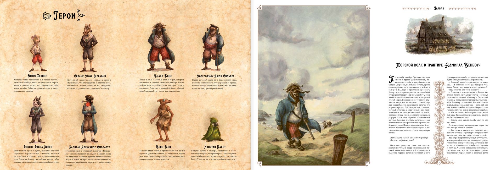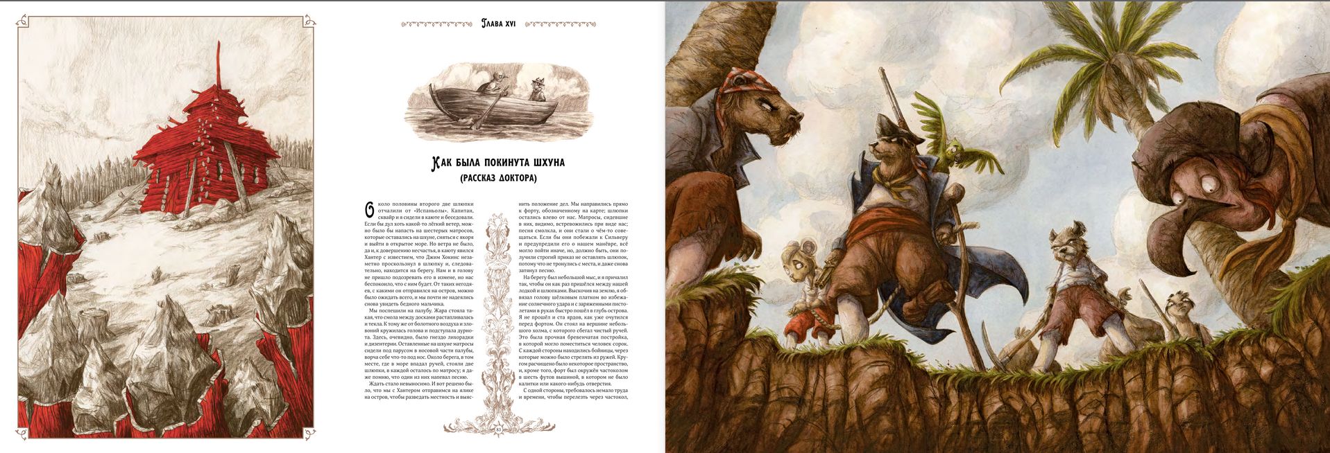 Jim Hawkins' voyage on the schooner Hispaniola to the shores of Treasure Island has for the second century stirred the minds not only of children who dream of travel and distant lands, but also of adults. There seemed to be no artist who did not dream of drawing illustrations for Robert Lewis Stevenson's most famous novel. The young French artist Etienne Friès has perhaps the most unusual and memorable visual reading. The images of Jim Hawkins, the old pirate Billy Bones, the one-legged John Silver, the real gentleman Dr. Livesey and all the other characters of the most famous story about a treasure chest hidden on a remote desert island will surely be interesting for adults and children.