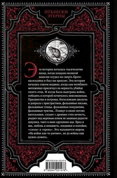 This story begins millennia ago, when a lord of great anaxia condemned his rapist brother to death and was cursed by him. This story began centuries ago, when treason elevated a penniless upstart to the throne of a decrepit kingdom, and a knight loyal to his fallen suzerain killed the traitor. This story began more recently, when the descendants of the losers rose up against the descendants of the winners. And lost again. This story began when the son of a dead rebel swore allegiance to his father's murderer. And when a war was won that was considered unthinkable. Festivities and pogroms, theological disputes and deadly rituals, love affairs and interrogations with passion false letters, false messengers, false assassination attempts, false feelings ... Hangmen are dancing in their loops, bells are ringing over the mad capital, the evil is coming down from the old walls, a girl who has never known joy is weeping over a dead horse, and grains of poison are melting in the wine. Delusion and reality, love and hate, fights and drunkenness, "tears" and "blood". It's called peace. "It's cozier in war," but you have to live to see war.