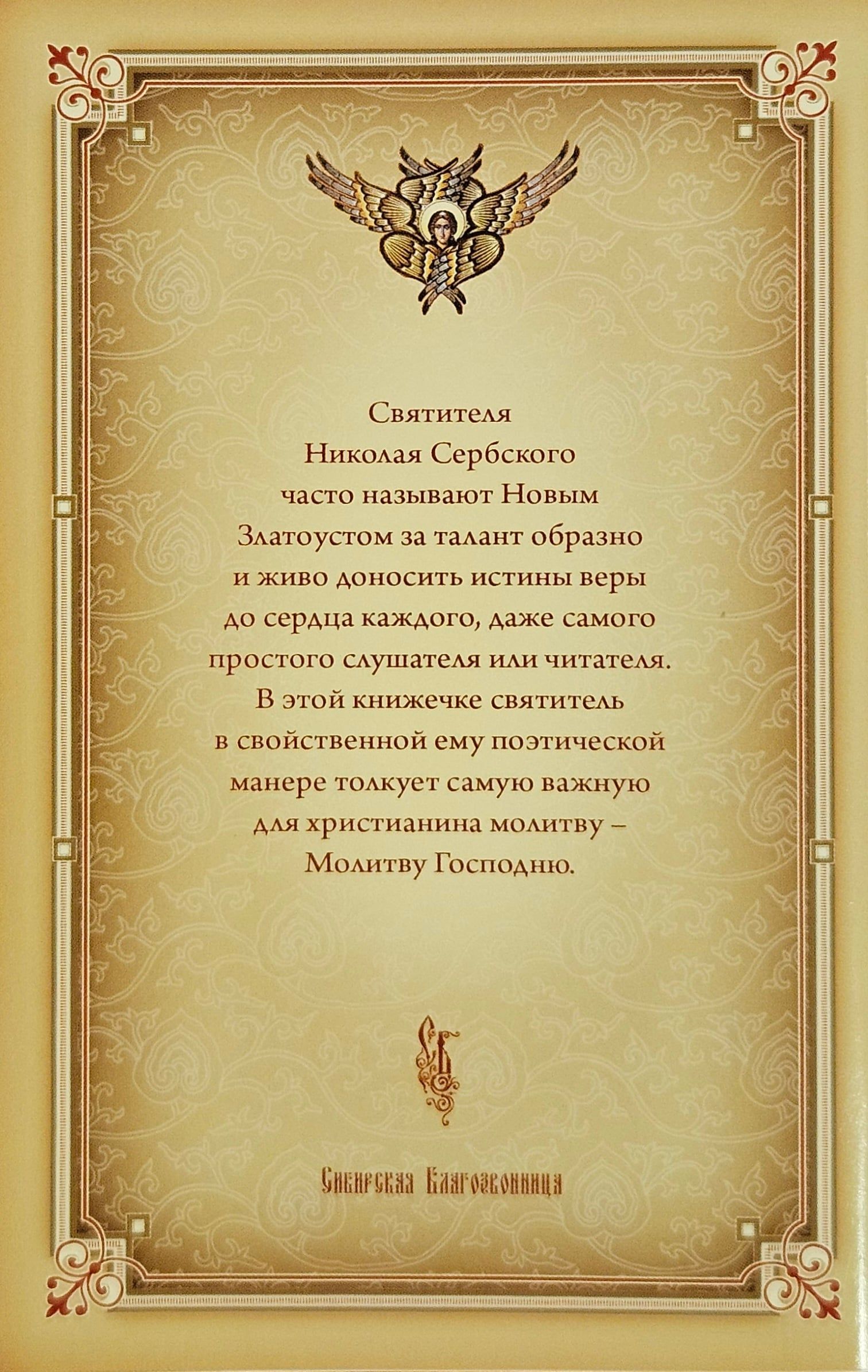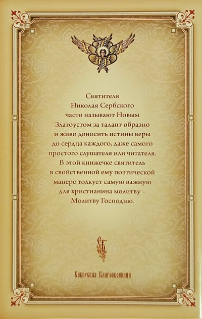 Saint Nicholas, Bishop of Ohrid and Zhicha, is called the Serbian Chrysostom. His books have long and rightfully enjoyed the attention and love of Russian admirers of the memory of the Serbian saint. The attention of the pious reader is presented with another work of this church writer, which contains a heartfelt and sublime interpretation of the most important Christian prayer, which the Lord Himself taught the apostles. The book is intended for the widest circle of readers over 6 years old.