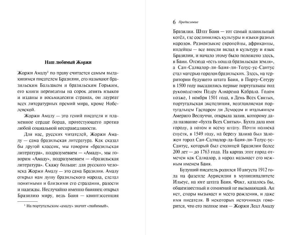 Jorge Amado is called the Brazilian Balzac and the Brazilian Gogol. He is considered one of the hundred best authors of the 20th century. His novel "Gabriela, Cloves, and Cinnamon" brought him international fame, and "The Discovery of America by the Turks" became one of the most striking works of the writer's late period.