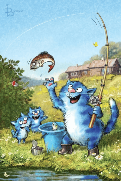 This beautiful and funny postcard featuring blue cats is sure to please the recipient, as Irina Zenyuk's illustrations are so sweet and meticulously crafted.