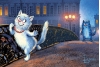 Postcard. Blue Cats. Date on the Bridge.