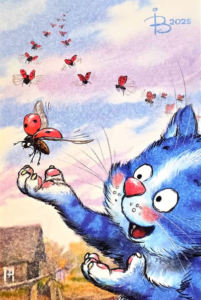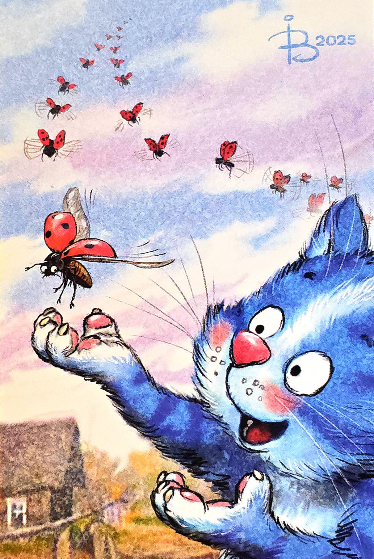 This beautiful and funny postcard featuring blue cats is sure to please the recipient, as Irina Zenyuk's illustrations are so sweet and meticulously crafted.