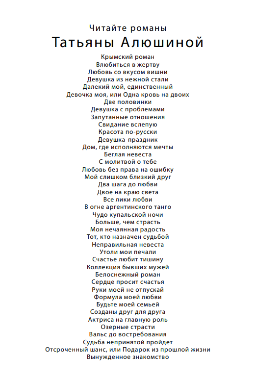 But Alisa Yelskaya, the heroine of Tatyana Alyushina's new novel, is not only a great scientist but also a strong, active woman. She won't passively wait for an unknown killer to break into her apartment and find the treasure hidden there by its former owners. She won't weep and wonder whether someone else's deadly plot will catch her or pass her by.