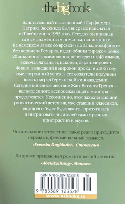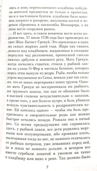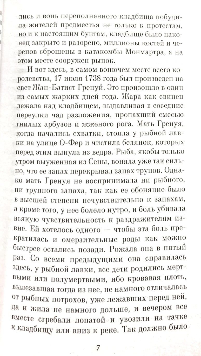 Patrick Suskind's brilliant and enigmatic Perfumer was first printed in Switzerland in 1985. Today it is recognized as the most famous novel written in German since Remarque's "On the Western Front without Change", published in more than 12 million copies, translated into 47 languages, including Latin, and, finally, screened. The movie, released in 2006, was a huge success, and its creators received six awards of the German Film Academy. Today, the triumphant march of Jean-Baptiste Grenouille's magnificent all-conquering monster continues. Undoubtedly, this thrilling romantic detective novel, already a classic, will long excite, attract and intrigue readers of all tastes and preferences.