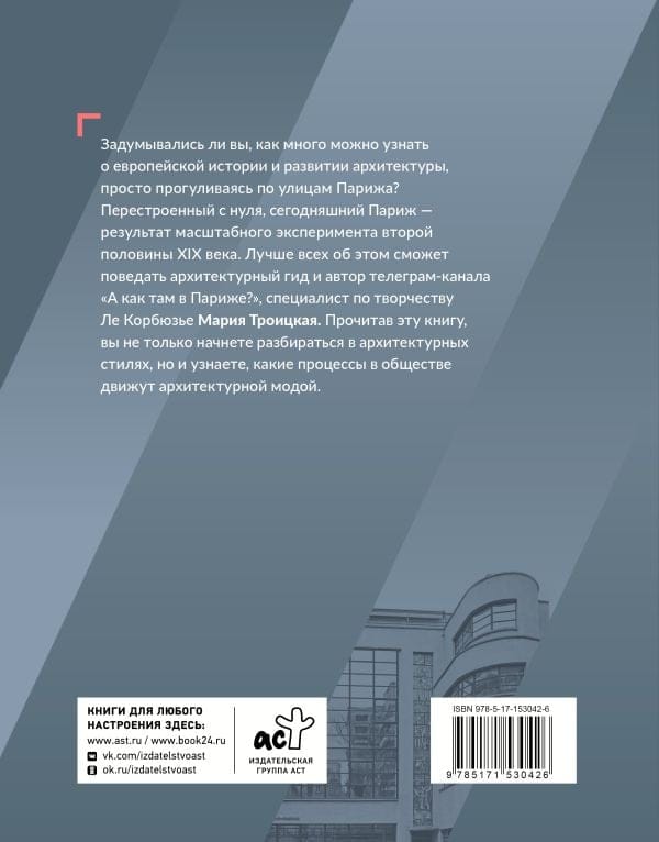 Have you ever wondered how much you can learn about European history and architectural development just by walking the streets of Paris? Rebuilt from scratch, today's Paris is the result of a large-scale experiment in the second half of the 19th century. Maria Troitskaya, an architectural guide and author of the Telegram channel "What's it like in Paris?", an expert on Le Corbusier's work, will be able to tell you about it best of all. After reading this book, you will not only begin to understand architectural styles, but also learn what processes in society drive architectural fashion.