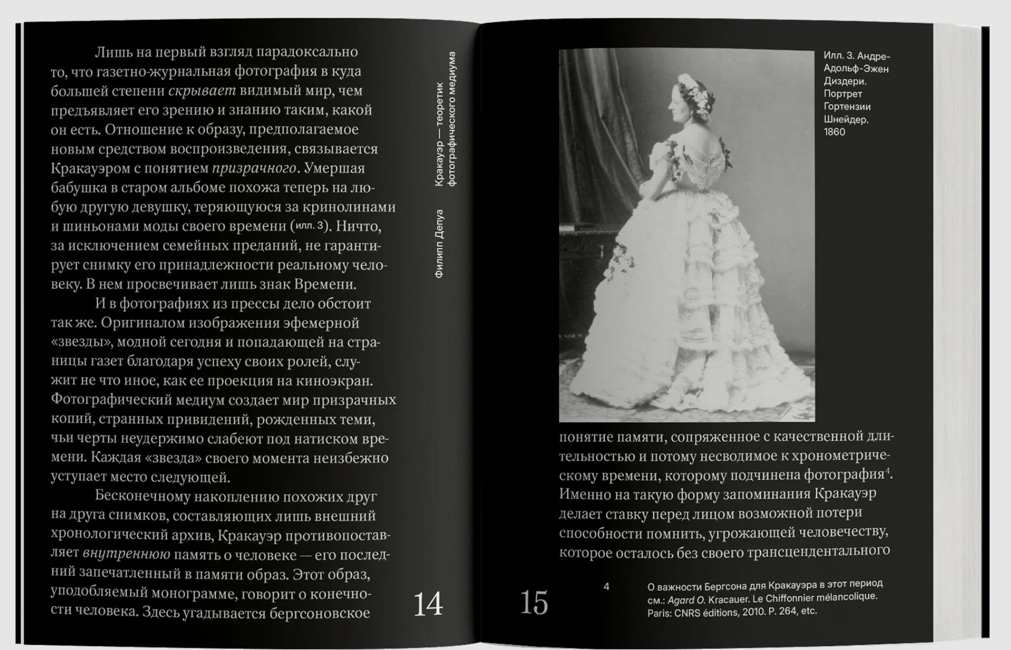 This collection brings together critical remarks, philosophical reflections, and the lived experiences of photography by Siegfried Kracauer, one of the leading intellectuals of the Weimar Republic. Essays written between 1927 and 1933 and 1951 place photography in the context of popular culture, urban life, the world of cinema, and questions of memory and history. The collection concludes with a series of Kracauer's photographs for the hypothetical project "Curriculum Vitae in Photographs," with commentary by Maria Zinfert. All of these texts are preceded by an article by Philippe Depoix, a professor at the University of Montreal, literary scholar, and historian of ideas, "Kracauer: A Theorist of the Photographic Medium."