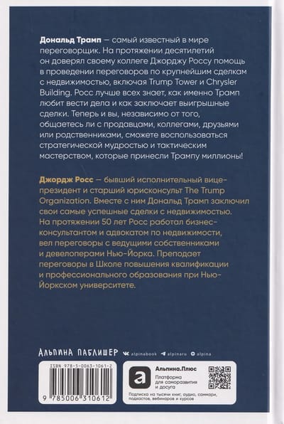 Donald Trump is the world's most renowned negotiator. For decades, he's trusted his colleague George Ross to help him negotiate major real estate deals, including Trump Tower and the Chrysler Building. Ross has vast experience, an eye for detail, and, most importantly, an understanding of human nature. He knows better than anyone how Trump likes to do business and how he achieves winning deals. Now, whether you're dealing with sellers, colleagues, friends, or family, you too can benefit from the strategic wisdom and tactical mastery that have earned Trump millions.