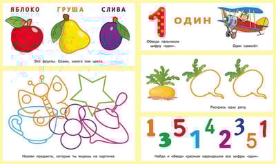 "First tasks for kids" is 38 exciting tasks for children 2-4 years old to develop thinking, logic, attention and fine motor skills. The child will get acquainted with numbers, will learn to count from one to five using fruits and vegetables as examples, will be able to practice basic writing skills, color pictures and make an applique. The booklet has a medium format, is published in paperback and contains 16 color pages.