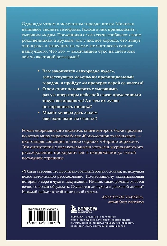 One morning, phones start ringing in a small Michigan town. The voices belong to... the dead. Messengers from the other world tell their relatives and friends that all is well, that they are living in heaven, and wish the very best to those living on earth. Is this the greatest miracle in the world or someone's cruel prank?
