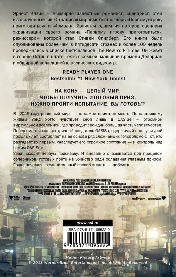 In 2045, the real world is not a pleasant place to be. Wade Watts feels truly alive only in OASIS, a vast virtual space where most of humanity spends its days. Before his death, the eccentric creator of OASIS, obsessed with the pop culture of the past years, compiles a series of complex puzzles based on it. Whoever solves them first will inherit his vast fortune - and control of OASIS itself. Wade finds the first clue. Suddenly he finds himself in the crosshairs of his rivals, who are willing to kill for the ultimate prize. The race is on, and the only way to survive is to win.