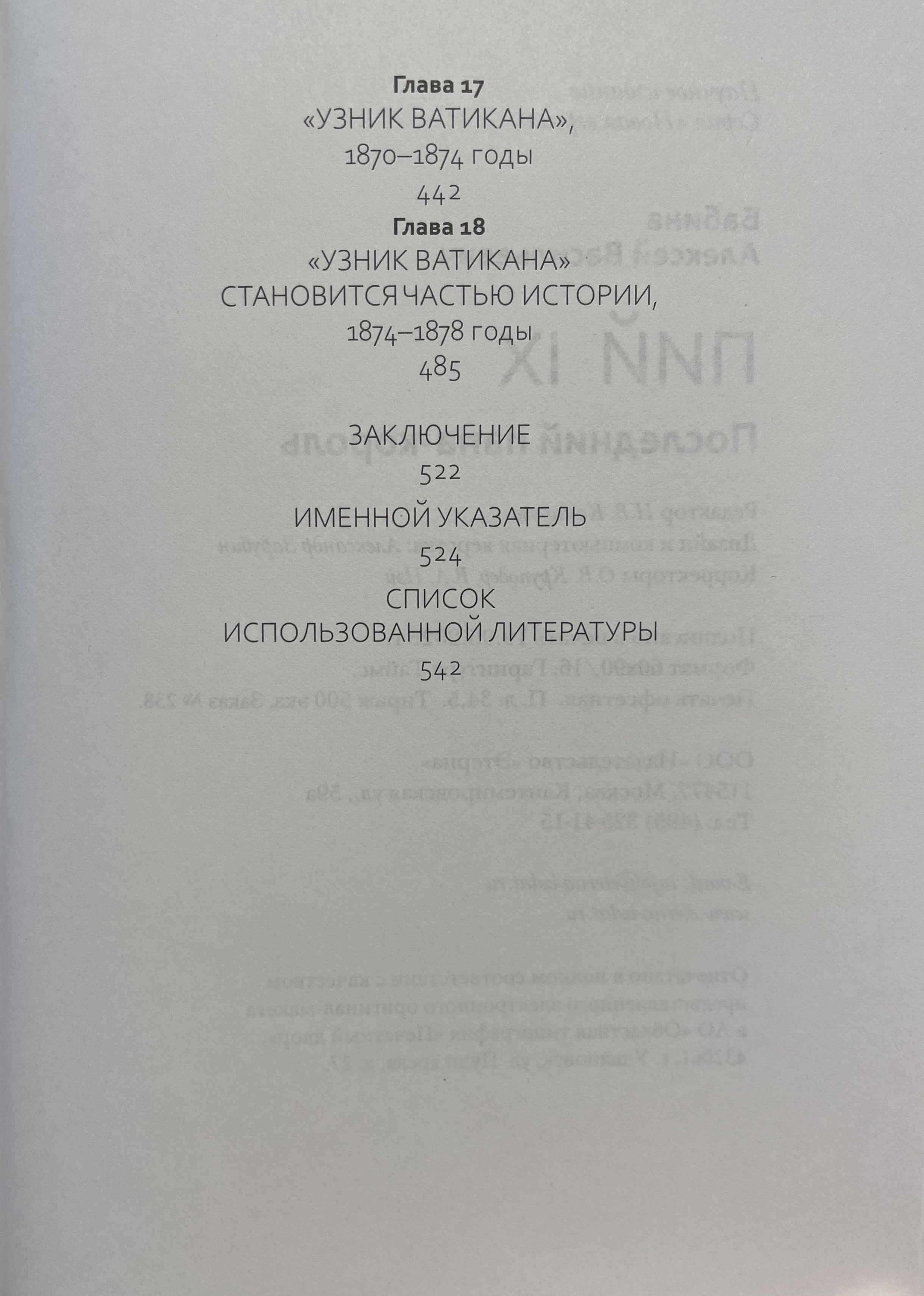 The first book in Russian dedicated to the biography and historical role of Pope Pius IX, the last pope-king. Pius IX led the Roman Catholic Church from 1846 to 1878—thirty-two years, the longest tenure in the history of the papacy, counting from the time of St. Peter himself.