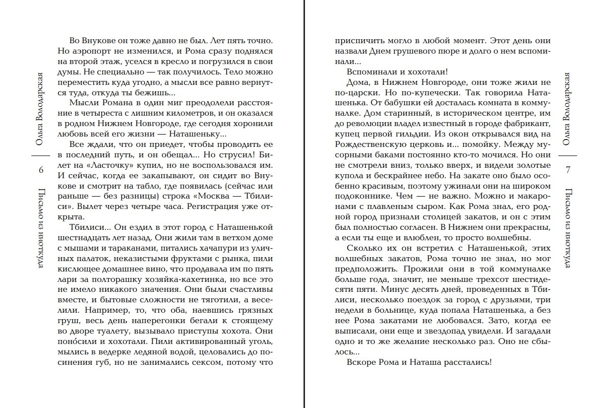 Natasha became Roman's first and deepest love. They met when they were fifteen and broke up during their final year of university. Much time had passed since then, but when Roma learned of Natasha's death, he was devastated. Unable to attend the funeral, he bought a ticket to Tbilisi...