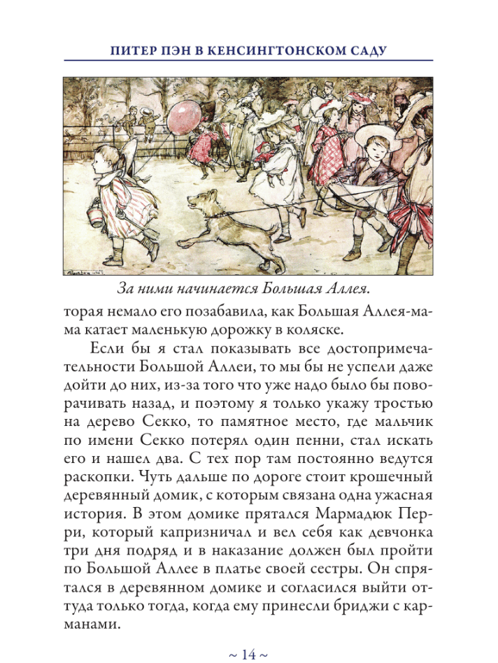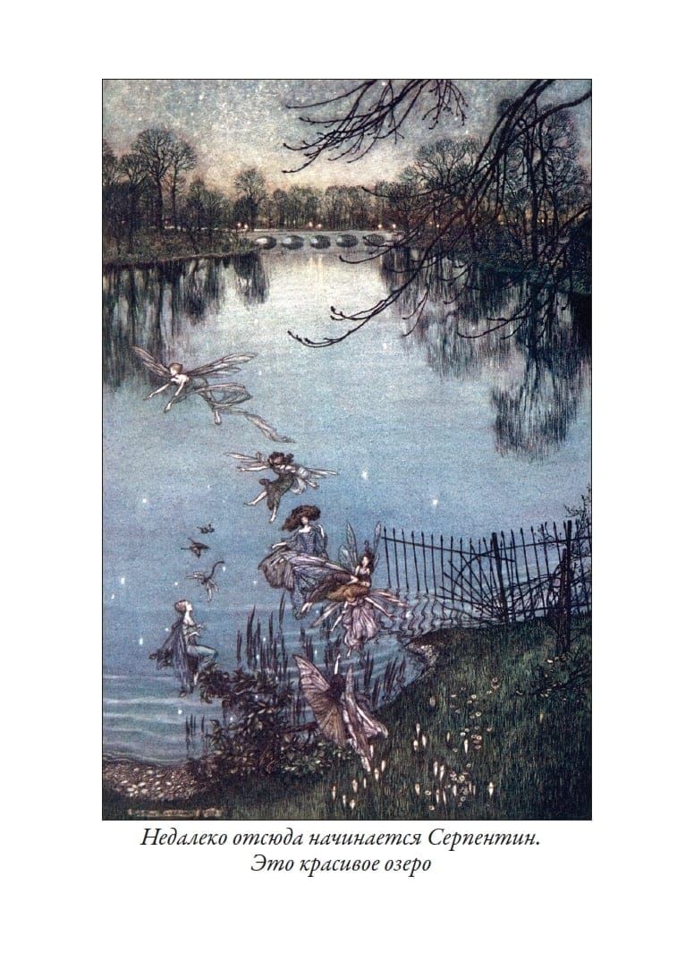 "Peter Pan in Kensington Gardens" (1906) is a fairy tale by Scottish writer James Barrie (1860–1937), his earliest work about a boy who refused to grow up. This story reveals what happened to the indefatigable Peter Pan before he became the leader of the Lost Boys and met young Wendy. The text is presented in a translation by Doctor of Philology Nina Mikhailovna Demurova (1930–2021). Illustrations were provided by the renowned English artist Arthur Rackham (1867–1939).
