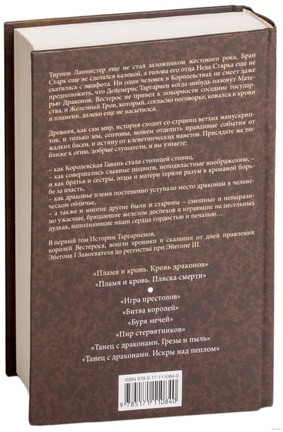 Tyrion Lannister has yet to be held hostage to a cruel doom, Bran Stark has yet to be crippled, and his father Ned Stark's head has yet to roll off the scaffold. No man in the Kingdoms dares even suggest that Daenerys Targaryen will ever be called the Mother of Dragons. Westeros has not brought neighboring nations into submission, and the Iron Throne, which the saying goes was forged in blood and flame, is far from satiated. History, as old as the world itself, descends from the pages of old manuscripts, and only we septons can separate truthful events from pathetic fables, and truth from slanderous accusations.