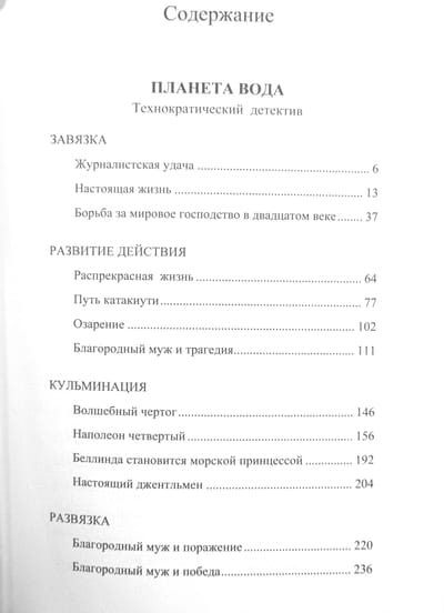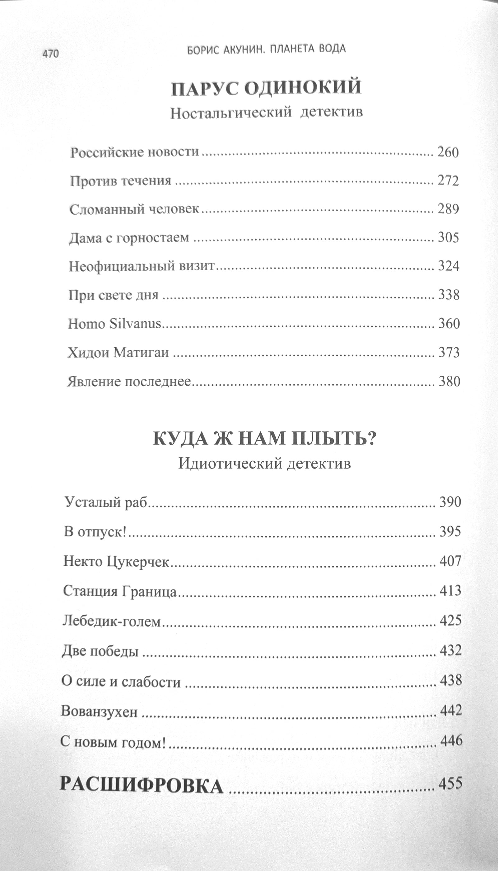 Three stories, all about water. The first is dedicated to Jules Verne, the second to an early story in Fandorin's cycle, "The Decorator," and the third to V.I. Lenin's book, "Three Sources and Three Component Parts of Marxism."