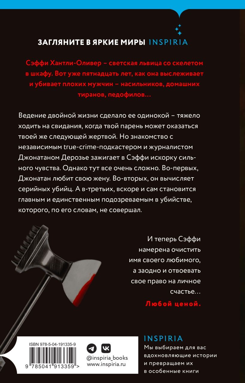 BBC Book Club and Amazon Editor's Choice Saffy Huntley-Oliver is a socialite with a skeleton in her closet. For fifteen years now, she's been tracking down and killing bad men - rapists, domestic tyrants, pedophiles... Her double life has made her lonely - it's hard to go on dates when your boyfriend could be your next victim. But meeting independent true-crime podcaster and journalist Jonathan Derosier ignites a spark of strong feelings in Saffy. However, things are complicated here too. First of all, Jonathan loves his wife. Secondly, he's also a serial killer. And thirdly, he soon becomes the main and only suspect in the murder, which, according to him, did not commit. And now Saffy intends to clear the name of her beloved, and at the same time to win back her right to personal happiness... At any cost.