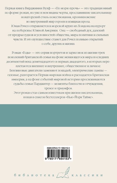 The novel "Years" - a series of portraits and sketches from the lives of three generations of a British family against the backdrop of the changing world of the last decades of the nineteenth century and the first twentieth, in which the external and internal, public and personal intertwine. Gasoline engines replace horses, electric lamps replace gas lamps, World War I erupts and the British Empire disintegrates, and against the backdrop of the events of world history traces the fortunes of the Pargeter family - moments of intimacy and estrangement, anxieties and triumphs. This novel became the most famous in the writer's lifetime, hitting the New York Times bestseller list.