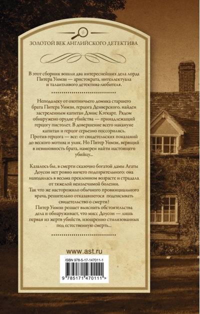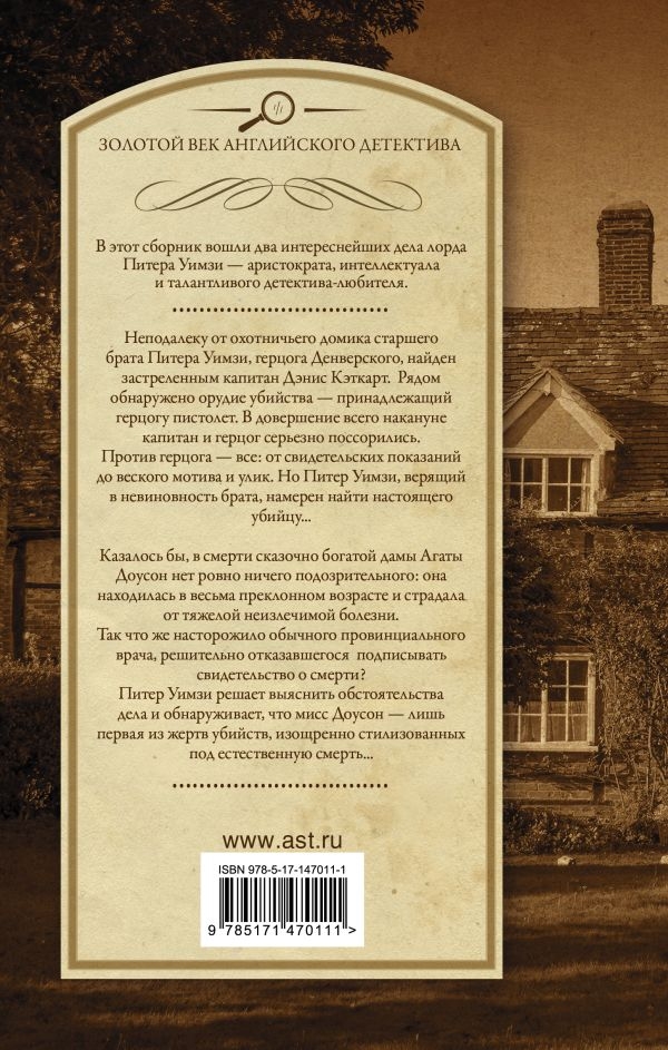This collection includes two of the most interesting cases of Lord Peter Wimsey - aristocrat, intellectual and talented amateur detective. Not far from the hunting lodge of Peter Wimsey's older brother, the Duke of Denver, Captain Denis Cathcart is found shot dead. The murder weapon, a pistol belonging to the Duke, was found nearby. To top it all off, the captain and the duke had had a serious quarrel the day before. Everything from witness testimony to motive to evidence is against the Duke. But Peter Wimsey, believing in the innocence of his brother, intends to find the real killer ... It would seem that in the death of fabulously rich lady Agatha Dawson is exactly nothing suspicious: she was at a very advanced age and suffered from a serious incurable disease. So what was it that alerted an ordinary provincial doctor who steadfastly refused to sign the death certificate? Peter Wimsey decides to find out the circumstances of the case and discovers that Miss Dawson - just the first of the victims of murder, sophisticated stylized as a natural death ...