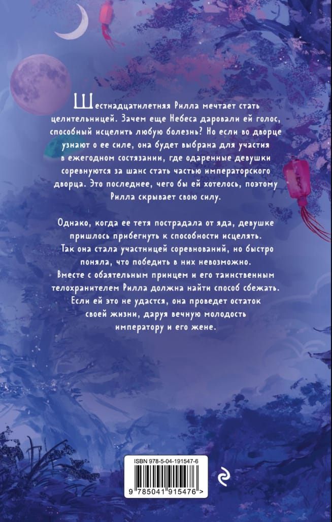 Sixteen-year-old Rilla dreams of becoming a healer. Why else would Heaven grant her a voice that can heal any disease? But if the palace learns of her powers, she will be chosen to participate in an annual competition where gifted girls compete for a chance to become part of the imperial palace. It's the last thing she'd want, so Rilla hides her power.