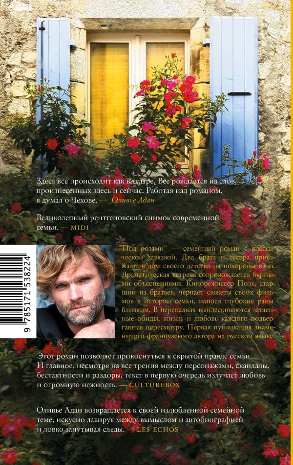 Olivier Adam is a popular novelist, screenwriter, and playwright, winner of prestigious awards, including the Goncourt Prize for his short story. Many of his books have been adapted for the screen. "Under the Roses" is the first publication of the famous French author in Russian.