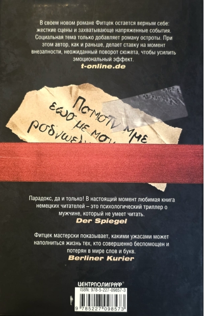Milan Berg is standing at a traffic light when a car pulls up next to him. There is a frightened girl in the back seat. In desperation, she presses a piece of paper to the glass. A cry for help? Milan cannot read the message - because he is illiterate! One of six million illiterate people in Germany. However, it is clear to him: the girl is in mortal danger. The search for the captive and attempts to help her turn into a nightmarish odyssey for Milan, at the end of which he is met with a cruel discovery: sometimes the truth is too terrible to live with, and ignorance is the greatest gift in the world.