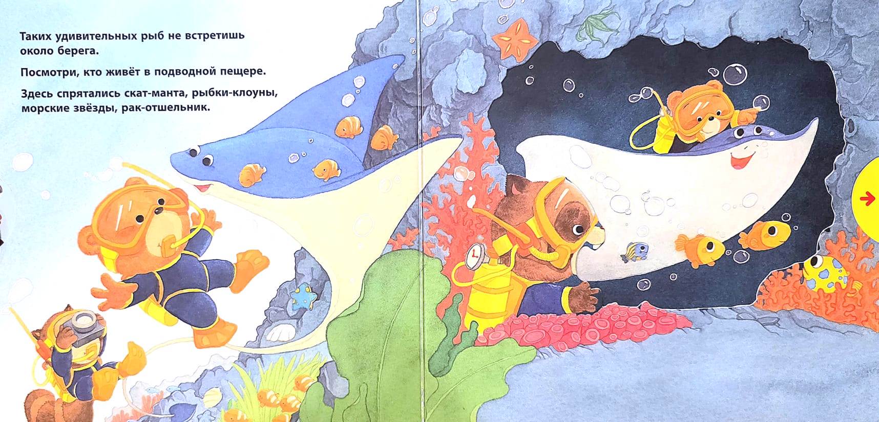 Teddy Bear dons his scuba gear and flippers and sets off on an underwater expedition with his friends. Come join us! Just look at all the unusual creatures here! There are stingrays with large wings, a crab with powerful claws, and a fish with a flashlight on its head lurks in the deepest depths. And what is that? Could it really be... a real sunken ship filled with treasure? Let's board it!