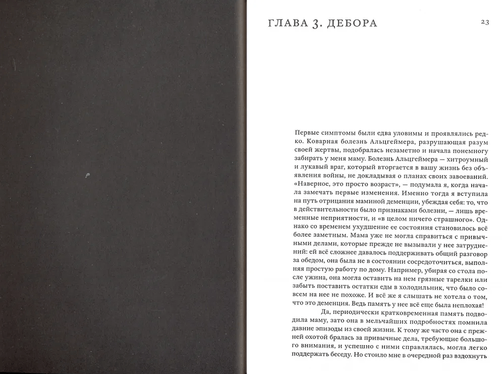 Laura Wayman simply and clearly tells how to communicate with people suffering from dementia, how to maintain a healthy emotional atmosphere and cope with the negative reactions of the patient. The author shows by the example of his family: all loved ones of the patient need to take care of their own physical and psychological condition in order for the help to be effective.