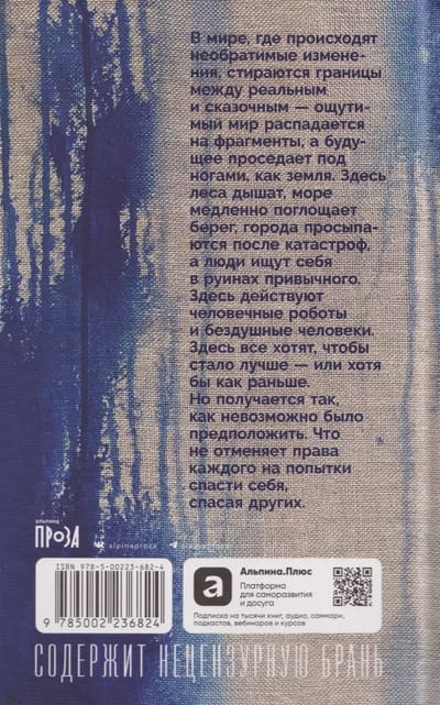 In a world undergoing irreversible change, the boundaries between reality and fantasy are blurred—the tangible world disintegrates into fragments, and the future sinks beneath our feet like the earth. Here, forests breathe, the sea slowly swallows the shore, cities awaken from catastrophes, and people search for themselves in the ruins of the familiar. Here, humane robots and soulless humans operate. Here, everyone wants things to get better—or at least like before. But things turn out differently than anyone could have imagined. This doesn't negate everyone's right to try to save themselves by saving others.