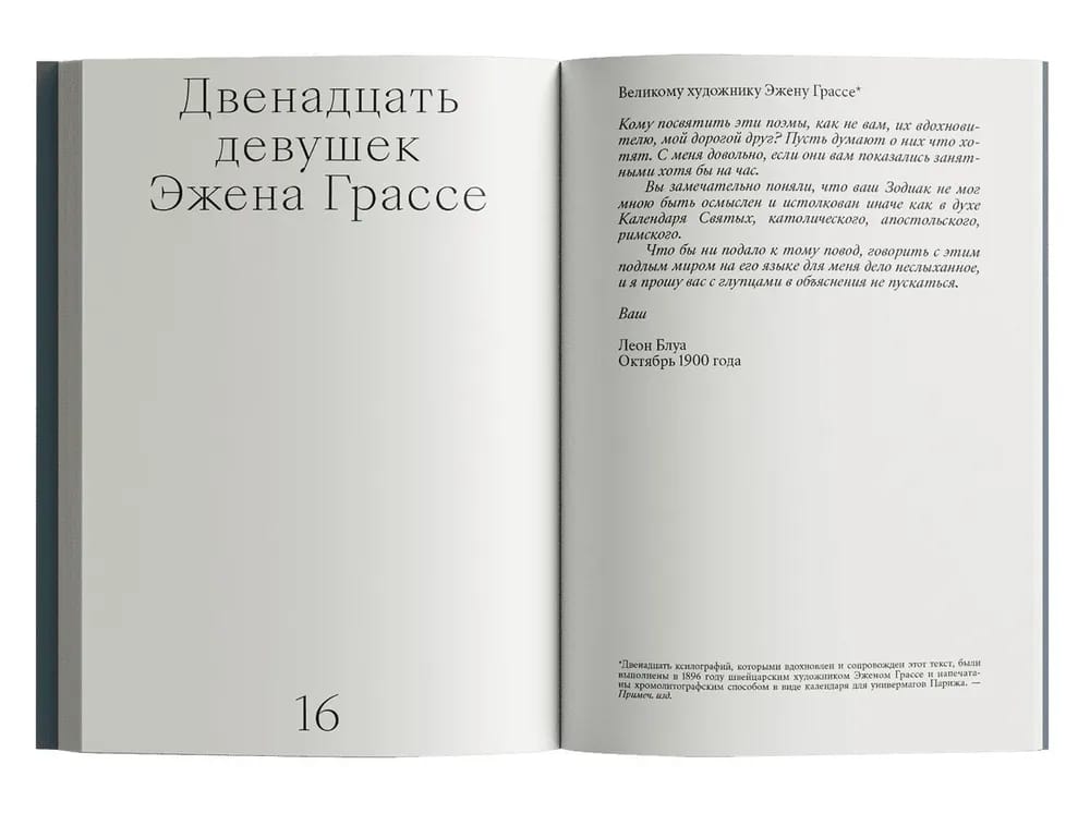 Léon Blois (1846-1917), French writer and publicist of the "end of a beautiful era", the turn of the nineteenth and twentieth centuries, left a vast literary legacy consisting of novels, novellas, polemical articles in the press, several volumes of diaries, and miniatures. All of his texts combine a rare stylistic sophistication, whimsical proto-surrealist imagery, and a fervent Catholic piety worthy of a medieval mystic. At the center of this small collection of prose poems, masterfully translated into Russian by Alexander Chernoglazov, is a kind of monthly calendar, twelve poem-visions composed by Blois based on a calendar designed in the Art Nouveau style by his contemporary, the engraver and designer Eugène Grasset (1845-1917).