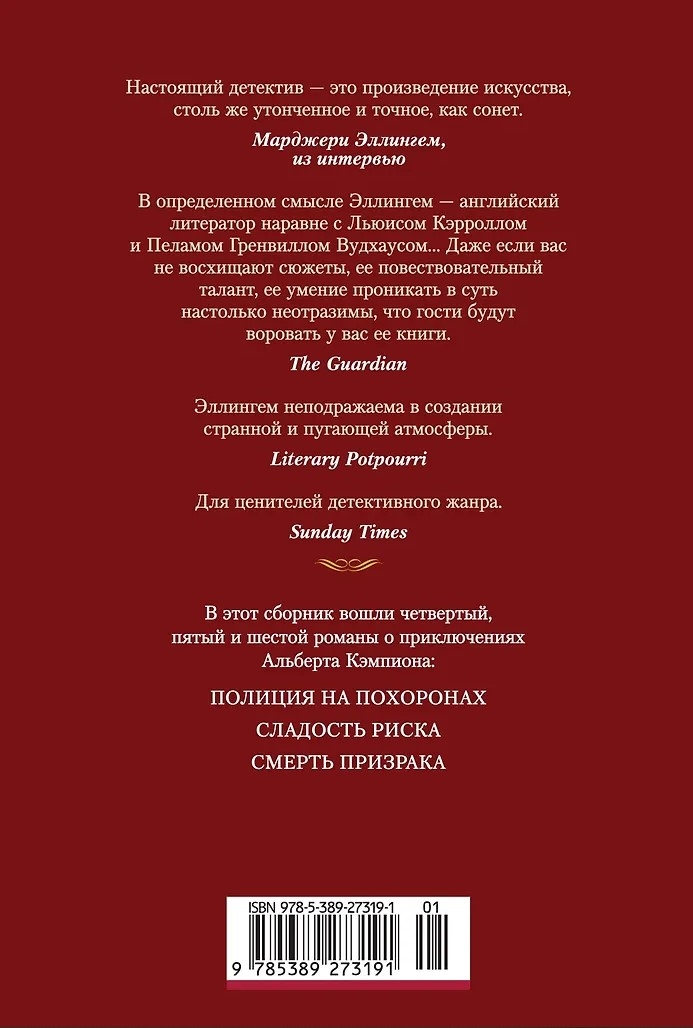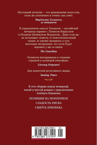 Margery Louisa Ellingham was an English writer who belonged to the "Golden Age of English Literature," recognized as the "Queen of Detective Fiction" alongside Agatha Christie, Dorothy Sayers, and Ngaio Marsh. Ellingham is best known for her books about the gentleman detective Albert Campion. This volume contains the fourth, fifth, and sixth novels in her main series.