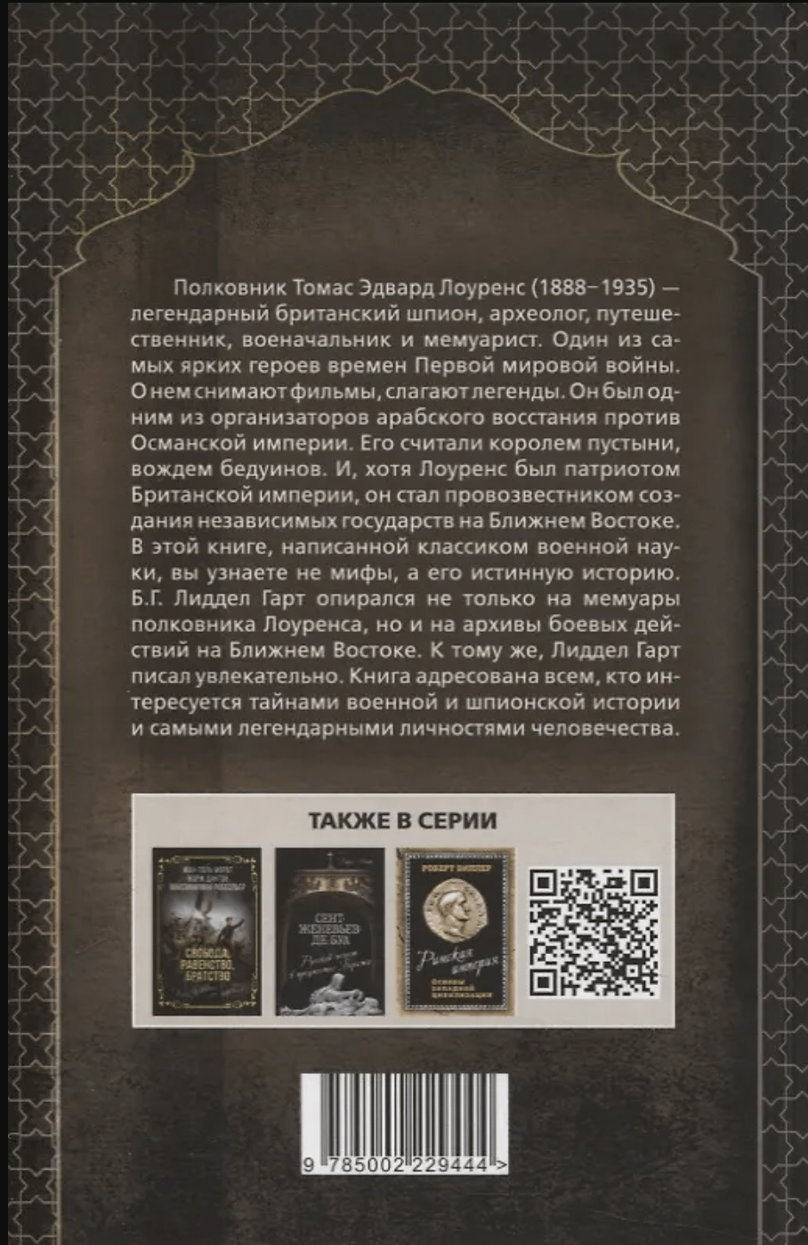Colonel Thomas Edward Lawrence (1888-1935) is a legendary British spy, archaeologist, traveler, military leader and memoirist. One of the most striking heroes of the First World War. Films are made about him, legends are composed. He was one of the organizers of the Arab revolt against the Ottoman Empire. He was considered the king of the desert, the leader of the Bedouins. And, although Lawrence was a patriot of the British Empire, he became a herald of the creation of independent states in the Middle East. In this book, written by a classic of military science, you will learn not myths, but his true story.