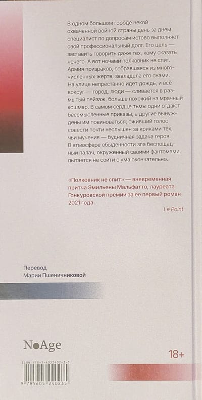 In a large city in a war-torn country, an interrogator zealously carries out his professional duty day after day. His goal is to make even those who have nothing to say talk. But at night, the colonel does not sleep. An army of ghosts, gathered from numerous victims, has taken over his dreams.