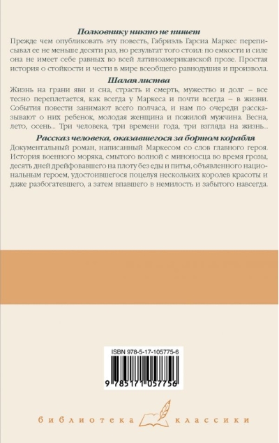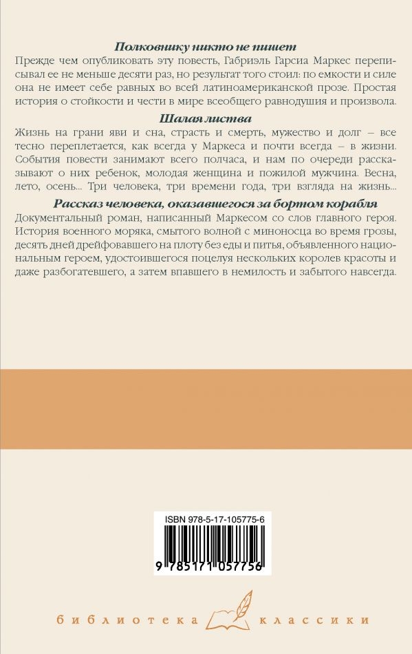 The collection includes the early works of the writer: "No One Writes to the Colonel", "Naughty Leaves", "The story of a man who was overboard the ship"