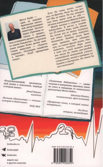 Between life and death, there's a library. Thirty-five-year-old Nora, a music teacher from Bedford, finds herself there when one night her entire life is thrown into disarray. The shelves stretch endlessly. Each book offers a chance to live her own, but completely different, life. To make different decisions and, most importantly, not to regret what never happened. It turns out, had Nora chosen differently at one point or another, she could have become a rock star, an Olympic champion, a glaciologist, a wife and mother, and even visited Australia.