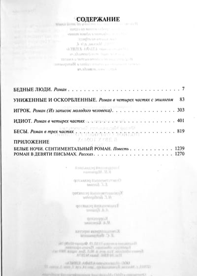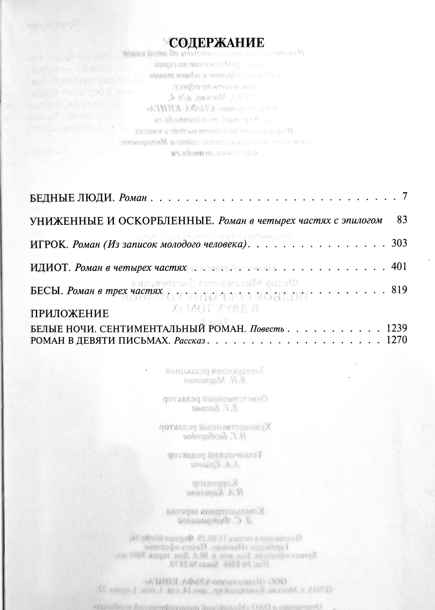 The first volume includes the novels "Poor People", "The Gambler", "The Idiot", "Demons", "The Insulted and the Humiliated", and the Appendix includes "A Novel in Nine Letters" and the story "White Nights. A Sentimental Novel".
