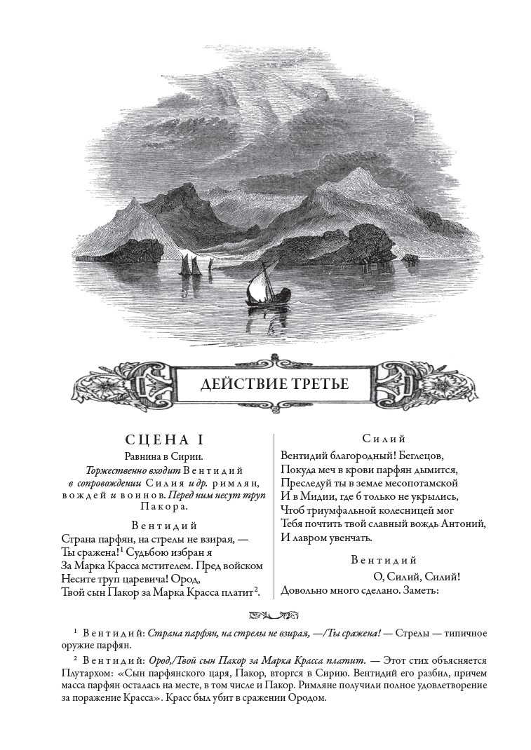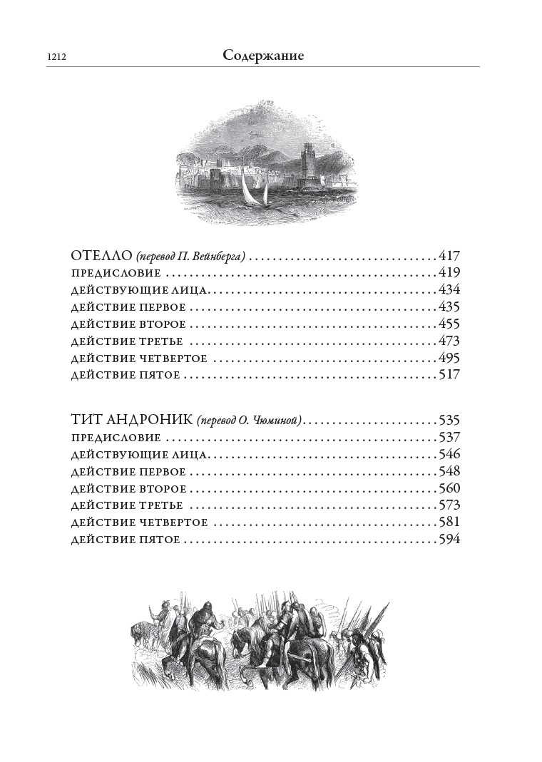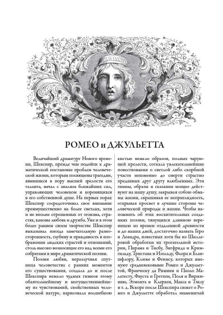 Shakespeare's works are part of the golden fund of world literature. In the so-called First Folio, that is, the first collected works of the great playwright, printed in 1623 in England, twelve of the thirty-six plays were classified as tragedies. We are talking about the dramas Romeo and Juliet, Macbeth, King Lear, Hamlet, Othello, Julius Caesar, Antony and Cleopatra, Titus Andronicus, Coriolanus, Troilus and Cressida, Timon of Athens and Cymbeline. All of them are included in this collection. Some of Shakespeare's tragedies are widely known and have been filmed many times. Other plays are not so familiar to the general public. Reading them will be no less interesting, because this is literature of the highest standard. Interest in Shakespeare's works in Russia began to grow in the first half of the 19th century thanks to productions on domestic theatrical stages. In 1830, the first prose summary of all of Shakespeare's dramas in Russian was published. It was written by N. H. Ketcher. In 1893, prose translations of Shakespeare's plays and sonnets edited by P. A. Kanshin were published. By the beginning of the 20th century, there were already more than a hundred translations of various works by Shakespeare in Russian. The best of them, by A. I. Kroneberg, P. I. Weinberg, A. V. Druzhinin and other outstanding Russian writers, were included in the fifth complete edition of Shakespeare. It was published in 1902 and became part of the twenty-volume "Library of Great Writers", which was published by the famous publishing house "Brockhaus and Efron". The editor of the "Library" was the famous literary historian and literary critic S. A. Vengerov. He attracted the best specialists of his time to work on the publication of Shakespeare's works. Among them were Corresponding Members of the Academy of Sciences N. P. Dashkevich and A. I. Kirpichnikov, the prominent Shakespeare scholar A. V. Druzhinin, Doctor of Literature M. N. Rozanov, the brilliant journalist and polyglot L. A. Polonsky. They and other literary scholars of the highest rank in this publication are the authors of the most interesting prefaces to all of Shakespeare's dramas. In 1842, the famous British publisher, editor and writer Charles Knight published a voluminous volume, "Shakespeare Illustrated." Among several artists whose works were included in this book, a special place was occupied by the engraver and painter John Gilbert. He was a talented self-taught man who created hundreds of magnificent illustrations for many iconic works of English literature. It is his works that adorn