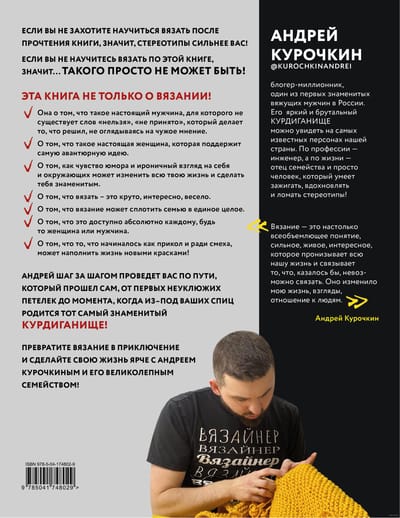 Andrey Kurochkin is a millionaire blogger, one of the first famous knitting men in Russia. His famous brutal "KURDIGANISHE" can be seen on the most famous personalities of our country. He is an engineer by profession, but in life he is a father of a family and just a man who knows how to rock, inspire and break stereotypes!
