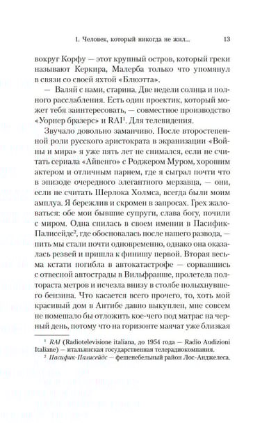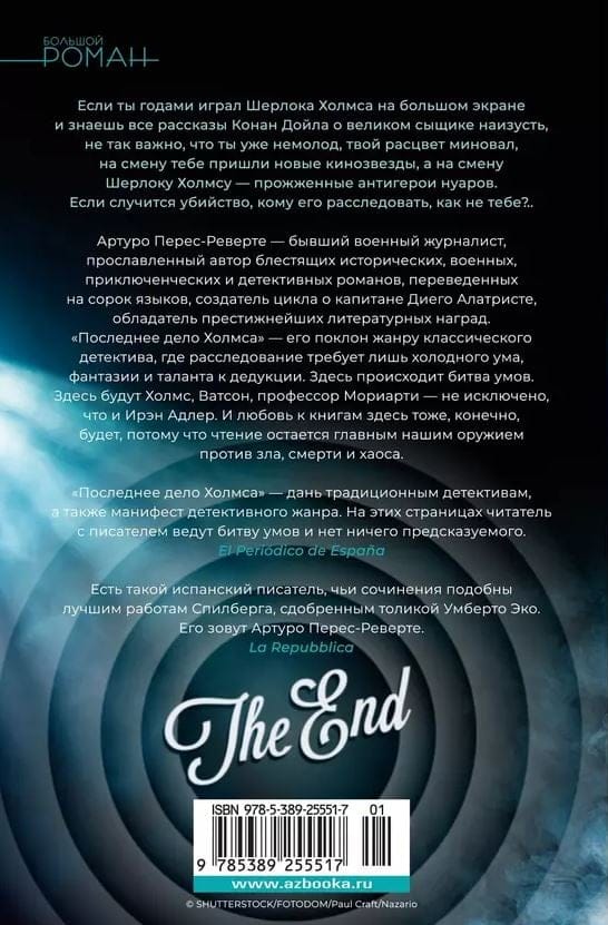 June 1960. Thirteen people, a hotel on a small Greek island, the suddenly discovered corpse of one of the guests. As the storm rages around, no one leaves the island and no one arrives on the island, including the police. However, as fate would have it, among those stranded on the island is Hopalong Basil, a movie star from Hollywood's golden age who played Sherlock Holmes in fifteen films. And if you've been playing the famous London detective on the big screen for years and know all Conan Doyle's stories about him by heart, it doesn't matter that you're not so young anymore, your heyday is probably past, new stars have replaced you, and Sherlock Holmes has been replaced by burned-out noir anti-heroes. If a murder happens, who will investigate it but you? Arturo Perez-Reverte - former military journalist, celebrated author of brilliant historical, military, adventure and detective novels, translated into forty languages, the creator of the cycle of Captain Diego Alatrista, the owner of the most prestigious literary awards. "The Last Case of Holmes" - his bow (hopefully not the last) to the genre of classical detective, where the investigation requires a cold mind, imagination and talent for deduction, rather than spectacular revolver shooting, fights in dark alleys, flashing neon signs outside the window and the indispensable bourbon in the desk drawer. There's a battle of wits going on here. Holmes, Watson, Professor Moriarty will be here - Irene Adler is not out of the question. And the love of books will certainly be here, too, because reading remains one of the few - perhaps the most important - of our weapons against evil, death, and chaos.