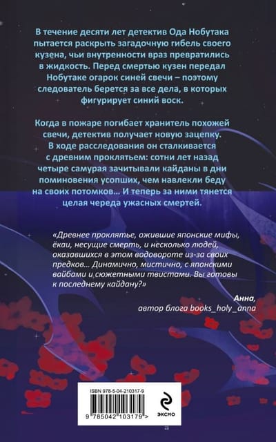 When the keeper of a similar candle dies in a fire, the detective gets a new lead. During the investigation, he encounters an ancient curse: hundreds of years ago, four samurai recited kaidans on days of remembrance of the dead, which brought trouble to their descendants ... And now a whole series of terrible deaths follows them.