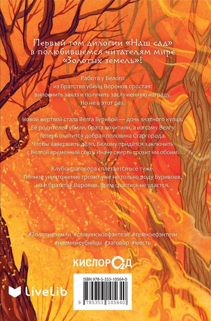 Bely, a member of the Raven Brotherhood of Assassins, has a simple job: complete a contract and collect a well-deserved reward. But not this time. The new victim is the daughter of a noble merchant, Velga Burivoy. Her parents have been murdered, her brother kidnapped, and Velga herself is now hunted by half of Stargorod. To complete the job, Bely will have to form a temporary alliance with Velga. Otherwise, death threatens them both. The plot thickens. Total annihilation threatens not only the Burivoy family, but also the Raven Brotherhood. Not everyone will be able to escape... The world created by Ulyana Cherkasova is high-quality contemporary youth literature, captivating from the very first page. The writer's specialty is stories comprised of multiple plot lines, distinctive, ambiguous characters, each with their own motive, and subtle references to mythology. "Look, Our Garden Is Dying" will appeal to all fans of the "Golden Lands" series, lovers of dark and Slavic fantasy, and high-quality young adult fiction. Welcome back to the Golden Lands!
