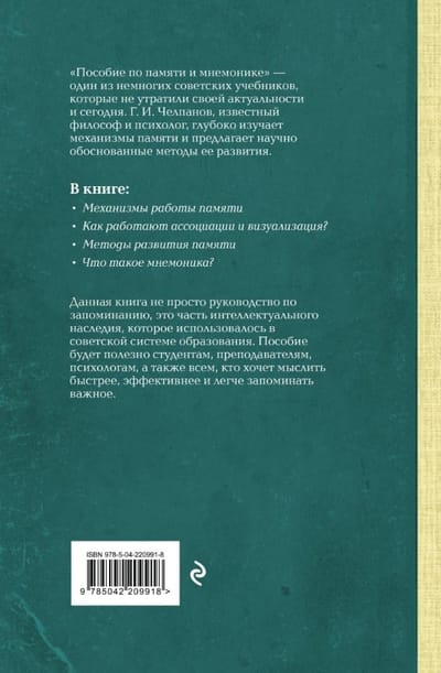 Do you want to remember information faster, improve your concentration and master proven memory techniques? The book by G. I. Chelpanov "A Manual on Memory and Mnemonics" is a practical guide that will help you unlock the potential of your mind.