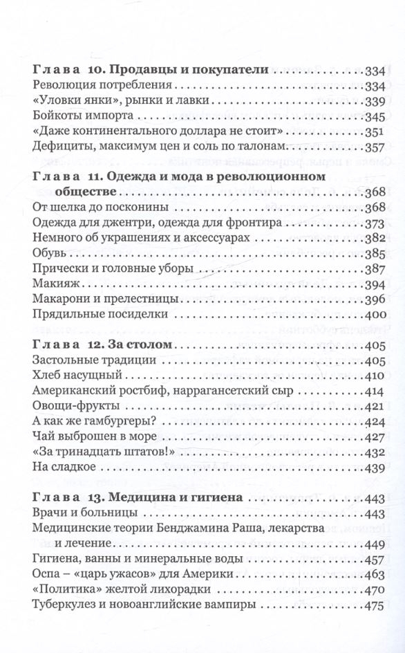The book tells how the "founding fathers" of the United States lived, how they traveled, courted girls, tried to cope with the shortage of goods and how the menu of an ordinary dinner or dance could tell about political preferences. The study begins with an examination of the state of the army, its everyday life. Family and spiritual affairs, the sphere of education, the state of law and order, various forms of leisure are also characterized. Particular attention is paid to the state of hygiene and medicine.