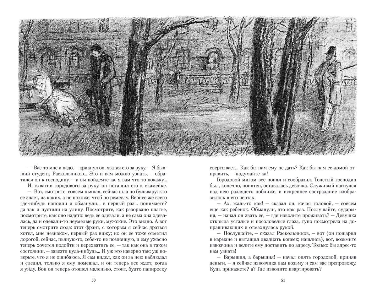 The novel “Crime and Punishment” is a sample of psychological and socio-philosophical prose. The main character - student Rodion Raskolnikov plots murder and robbery. His motives, on the one hand, are clear: he is poor and in dire need of money; on the other hand, it is not the thirst for enrichment that drives him, but the thought of the selectness and superiority of some people over others. Is it possible to justify the crime internally and what punishment awaits the one who dares to transgress social and moral laws - these questions create the dramaturgy of the novel and keep the reader in suspense until the finale. Expressive illustrations for the novel were created by artist Dementi Shmarinov, a master of conveying the most complex psychological characteristics of the characters.