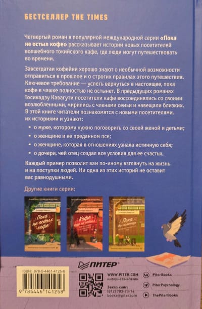 The fourth novel in the popular international series "Before the Coffee Gets Cold" tells the stories of new visitors to a magical Tokyo cafe where people can travel through time. Regulars of the coffee shop are well aware of the unusual opportunity to travel to the past and the strict rules of this journey. The key requirement is to return to the present before the coffee in the cup gets completely cold. In Toshikazu Kawaguchi's previous novels, visitors to the cafe reunited with their lovers, made peace with family members, and visited loved ones. In this book, readers will meet new visitors, their stories, and learn about: