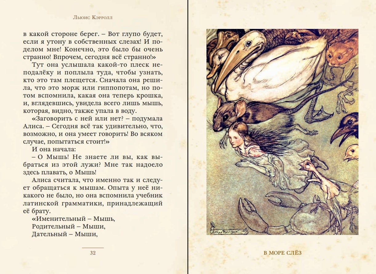 It's hard not to notice the White Rabbit running past, looking at his watch and fearfully saying, "Oh my God, oh my God, oh my God, I'm late". It's hard to reach an understanding with the Cheshire Cat when you only have to talk with his smile, and it's simply impossible to understand the rules of the Mad Tea Party. But if you remember that there are no rules, if you drink and eat everything and go wherever you want, you can learn a lot of interesting things. This is the conclusion Alice came to when she found herself in a magical land. In 1862, Lewis Carroll wrote an amazing story about Wonderland. Almost half a century later, the wonderful English artist Arthur Rackham created truly fabulous illustrations for it. That's how this book came to be. If you are ready to make an extraordinary, full of fun adventures, read it.
