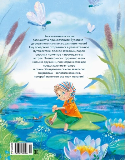 This fairytale story tells the adventures of Buratino, a wooden boy with a long nose!