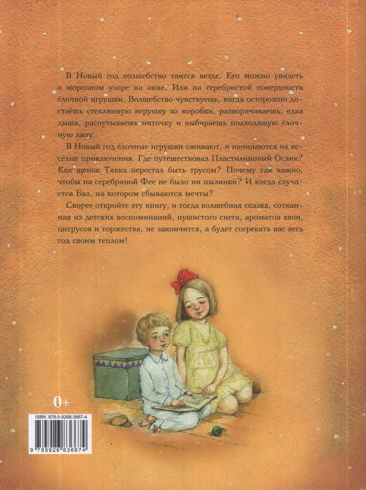 On New Year's Eve, magic lurks everywhere. You can see it in the frosty pattern on the window. Or on the silver surface of a Christmas tree toy. You feel the magic when you carefully take a glass toy out of the box, unwrap it, barely breathing, unravel the string and choose a suitable Christmas tree paw. On New Year's Day, the Christmas tree toys come to life and their merry adventures begin. Where did Plasticine Donkey travel? How did Tyavka the puppy stop being a coward? Why is it so important that the Silver Fairy doesn't have a speck of dust on her? And when does the Ball where dreams come true happen? Hurry up and open this book, and then the magical fairy tale, woven from childhood memories, fluffy snow, the scents of pine, citrus and celebration, will not end, and will warm you all year long with its warmth!